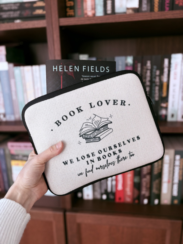 Linnen Book Sleeve - We lose ourselves in booksBen je vaak onderweg, en lees je dan graag een boek? Met een book sleeve bescherm jij je favoriete boek (of e-reader) tegen beschadigingen. Deze prachtige book sleeve is hier perfect voor!